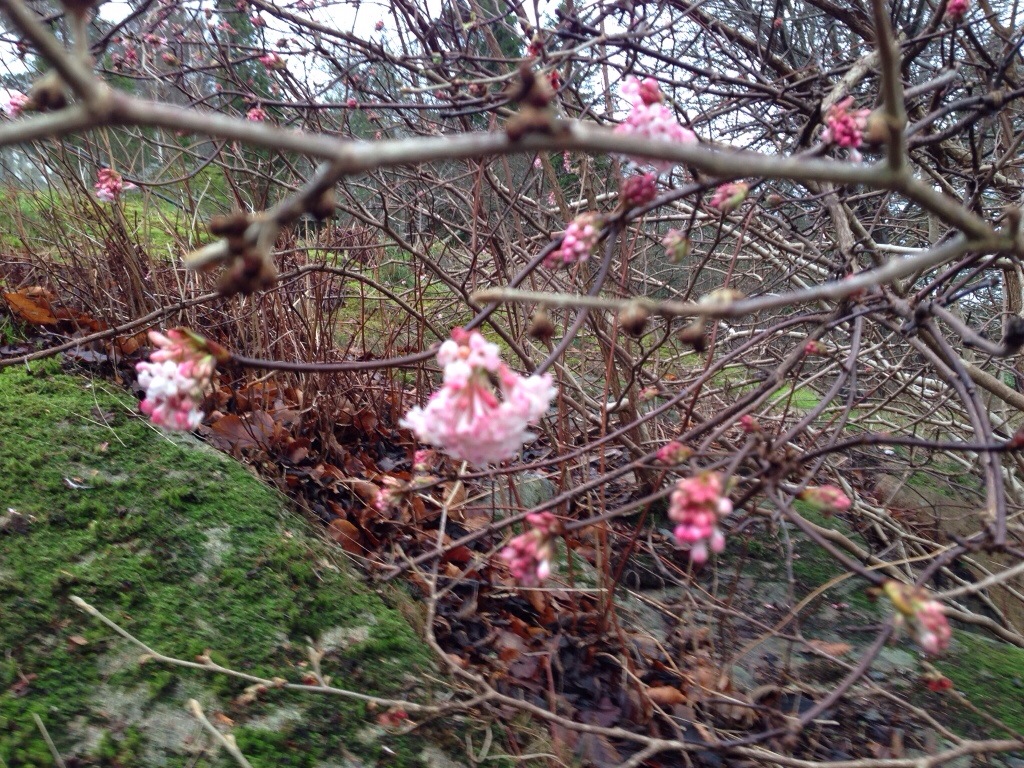 Sakta börjar vintern närma sig. Enligt prognosen ska den anlända på måndag. Normalt är det alltid kallast mellan 15 januari till 15 februari. Tyvärr har en hel del växter redan fått en hel del fart titta bara på dagens bilder från min trädgård. Även ogräsen har fått bra fart och ligger som en matta på vissa nya rabatter. Jag har även i fredags varit och täckt in nyplanterade buxbom och rhododendron. Förra vintern fick rhododendron stora skador och några gick bort helt.