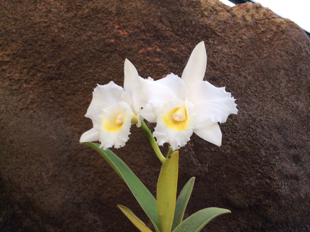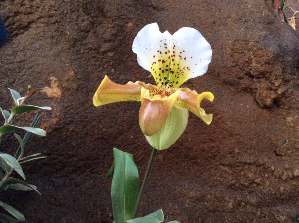 i kanten på berget blommar en riktigt gammal raritet, en Venussko, Paphiopedilum Trolle. Troligen från slottet Trolleholm. Från den tiden man hade egna växthus och personal. På den tiden var det ett privilegium att duka med trädgårdens egna grönsaker och blommor.