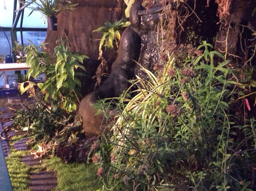 Nu är det extra roligt att vara inne i växthuset när kylan tränger sig allt närmare på utsidan. Att kunna gå på en gång i tropiskt klimat på svarta trampstenar omslutna av hemtrevnad och mattbildande australiska violer samt omringad av blommande växter.
