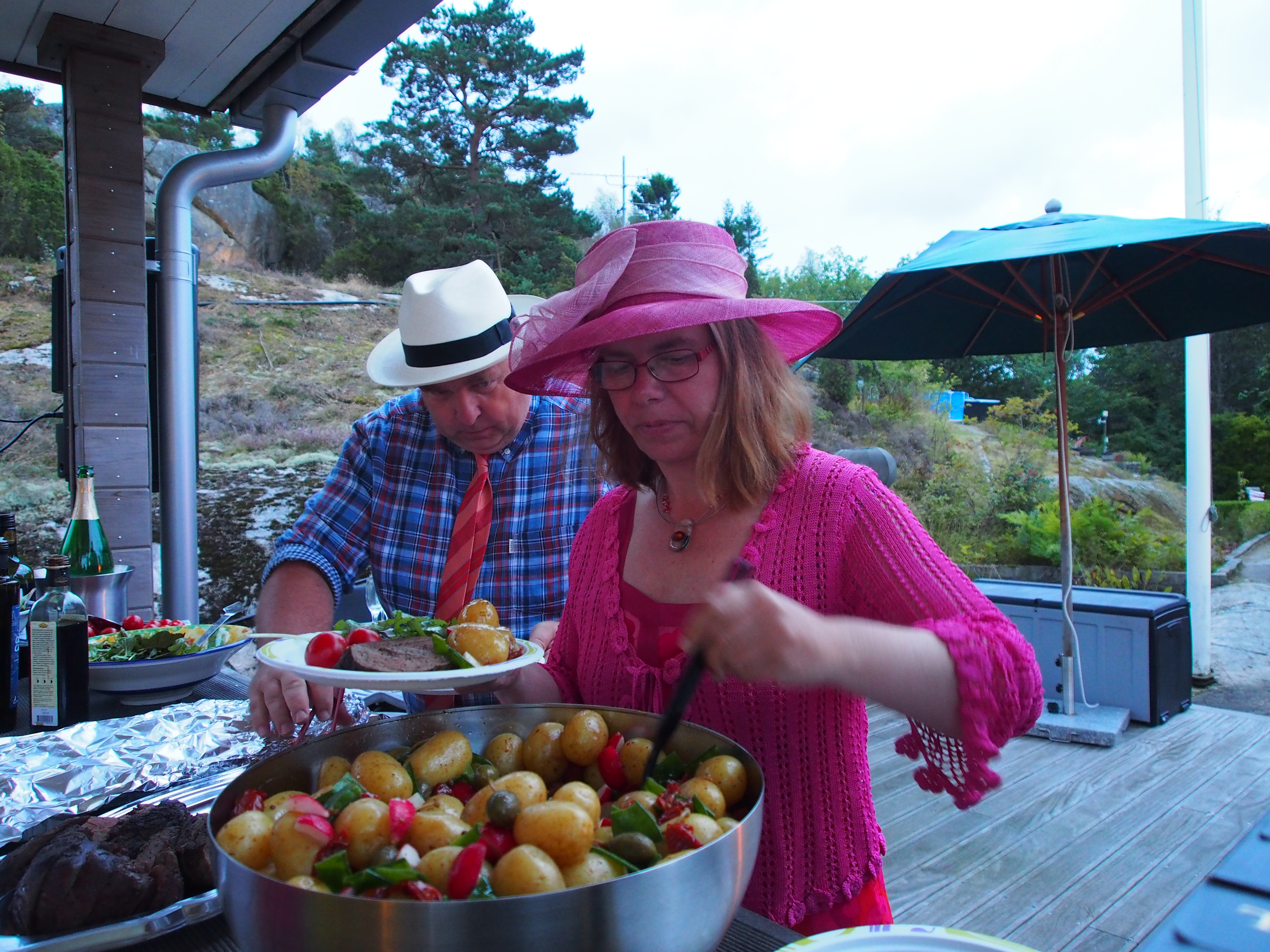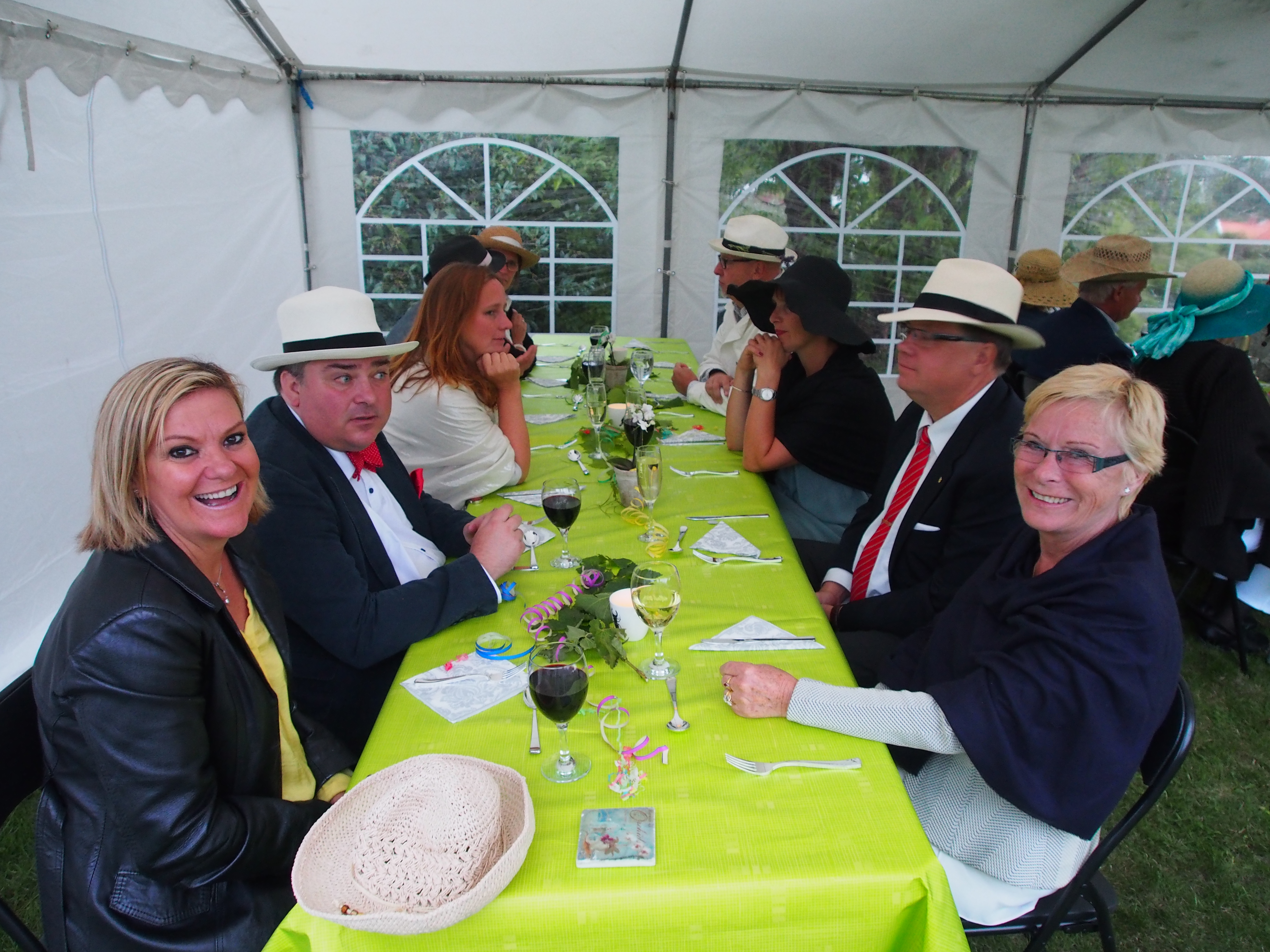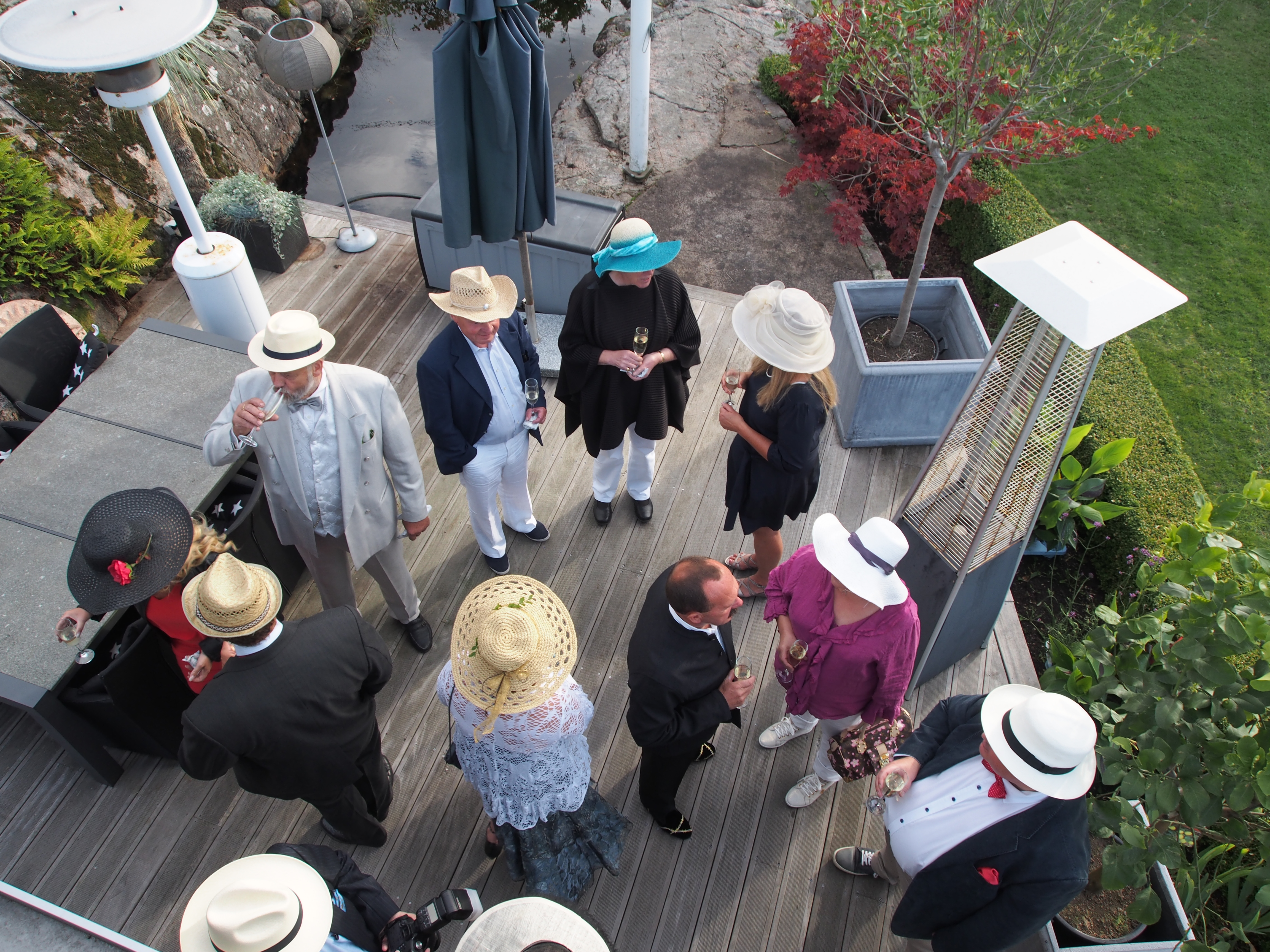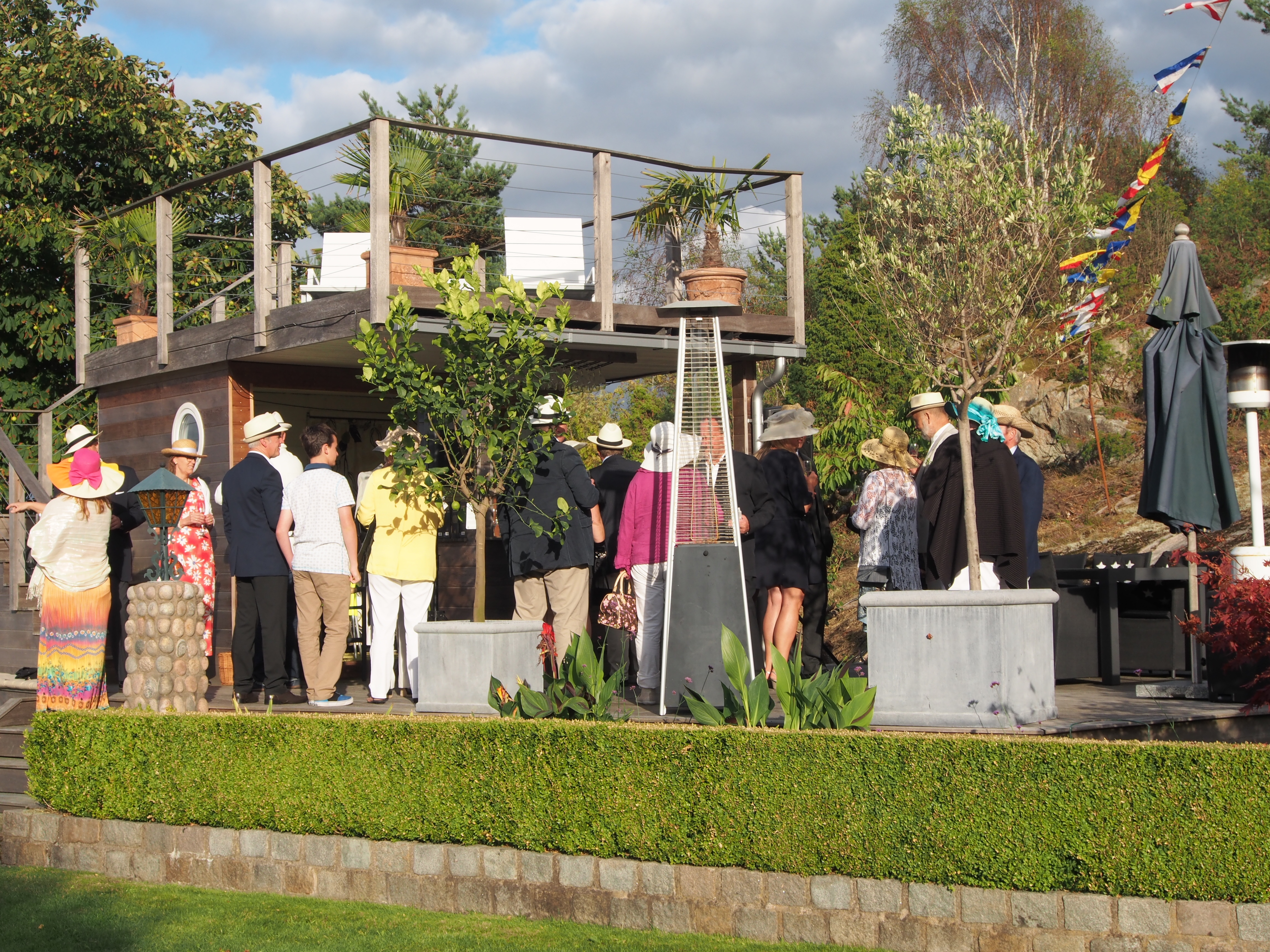 Det blev ett festligt avslut på en veckas semester med fint väder och värme. Det var 7 dagar med festligheter. Det började med Tjörn runt och mitt årliga American Lawn Party, dvs ett härligt gardenparty med hatt. Det blev ett verkligen lyckat party med bra väder förutom ett kort regnväder, kraftigt med svalkande i discohettan och endast några minuter långt, dock tillräckligt för att efterföljande dagar torka dynor.