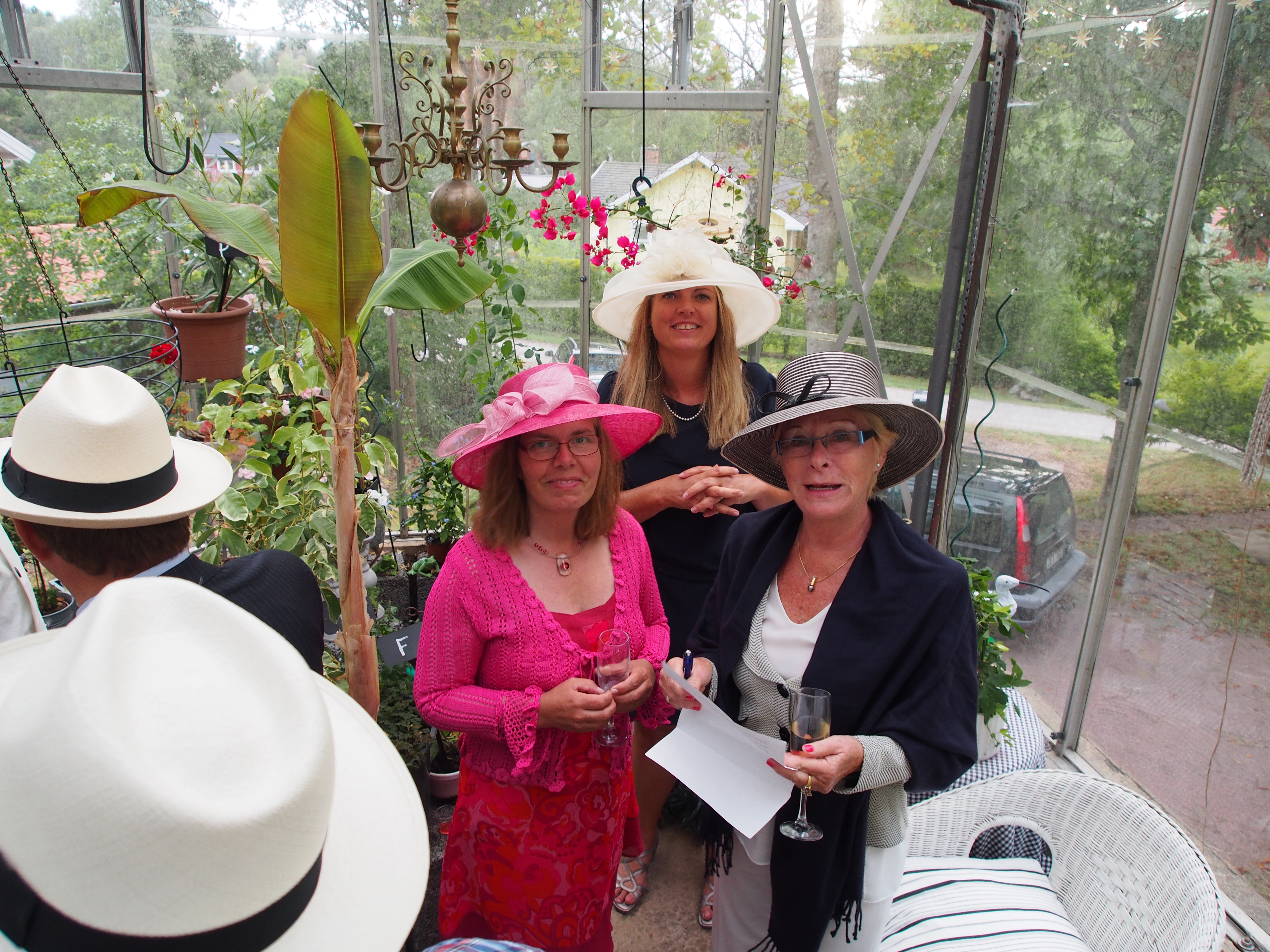 Trevligaste frågan var nog att para ihop likörglas med innehåll till lämplig växt, självklart för att göra livet svårare och sätta igång mer diskussion mellan deltagarna fanns det varken namn på likörer såsom växter. Det var härligt att se alla hattprydda personer ha trevligt i vårt lilla orangeri.
