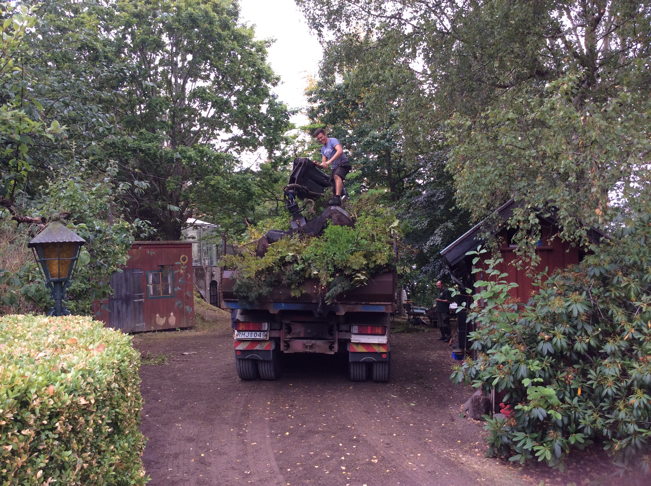 Det brukar vara en till två dagars röjning och tillsnyggning i trädgården innan samt en dag för inhandling av all mat och dryck. Detta är något som jag tycker är bland det roligaste som finns. Det blev 3 hela lastbilar med ris och ogräs. Utanför orangeriet hade ogräsen tagit överhand och det blev att gräva bort och föra dit nytt rött grus.