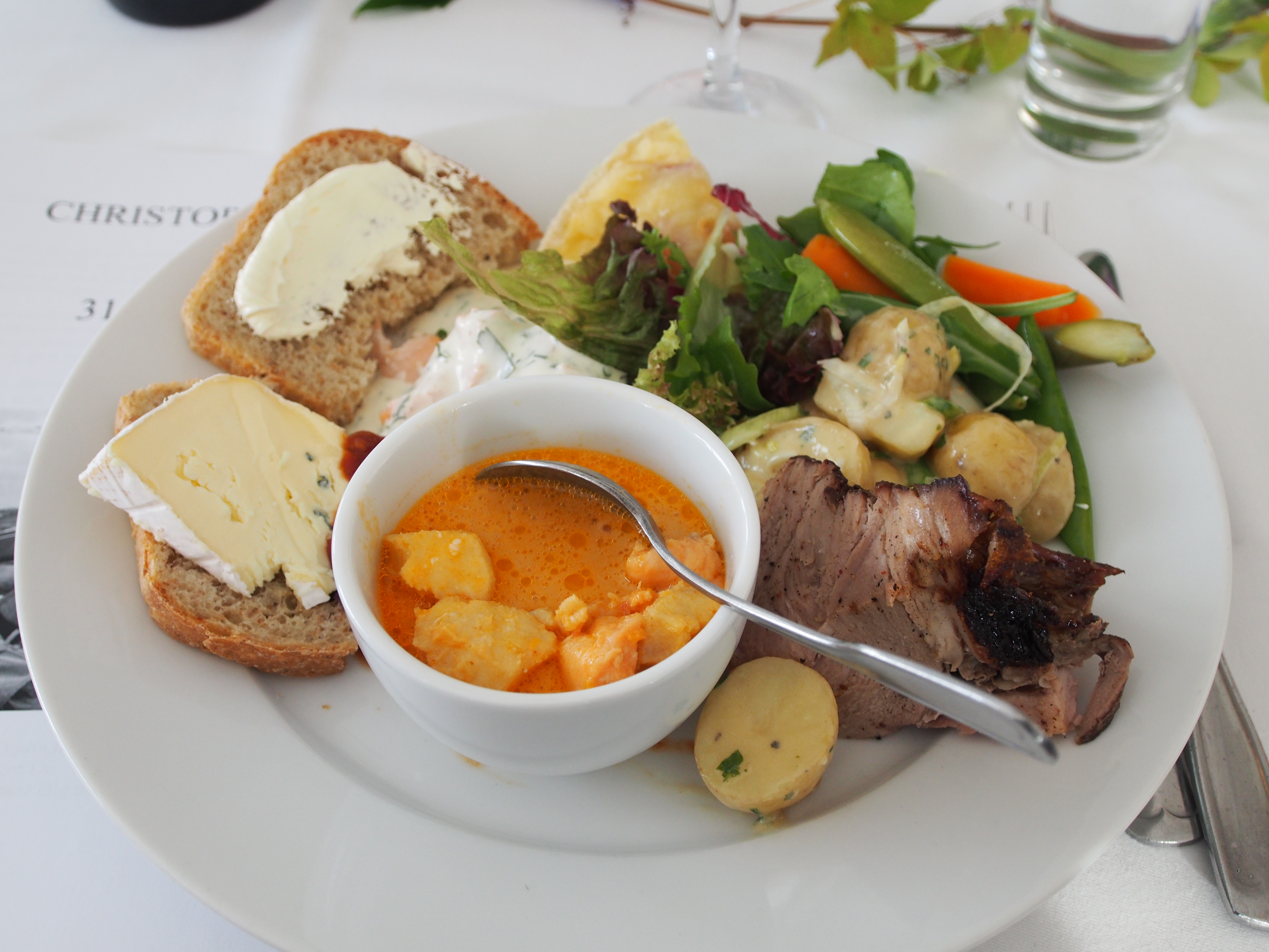 Efter cocktailpartyt drog flera av gästerna över den lilla bron till populära restaurangen Kylen, där det det snabbt serverades god mat.