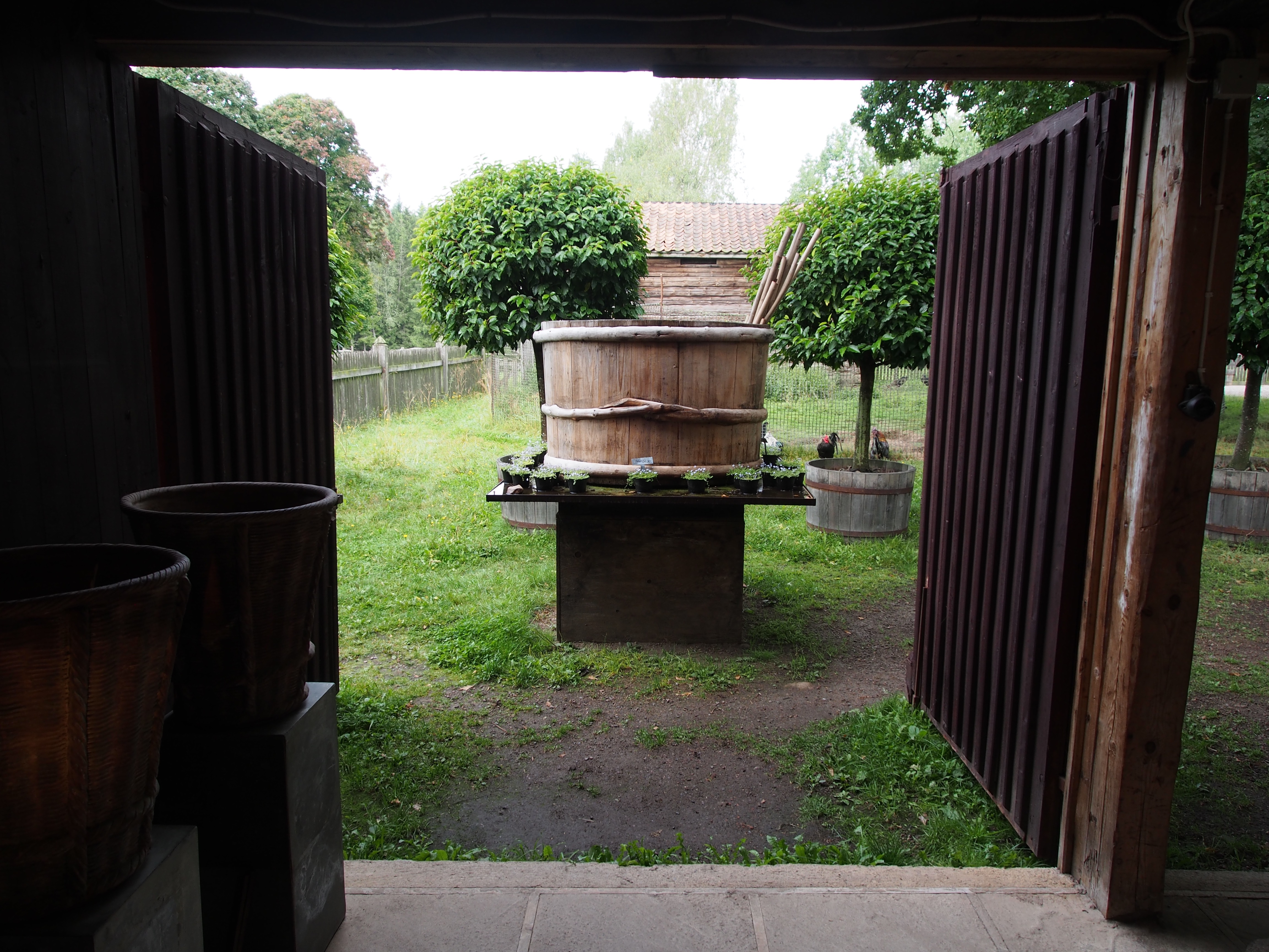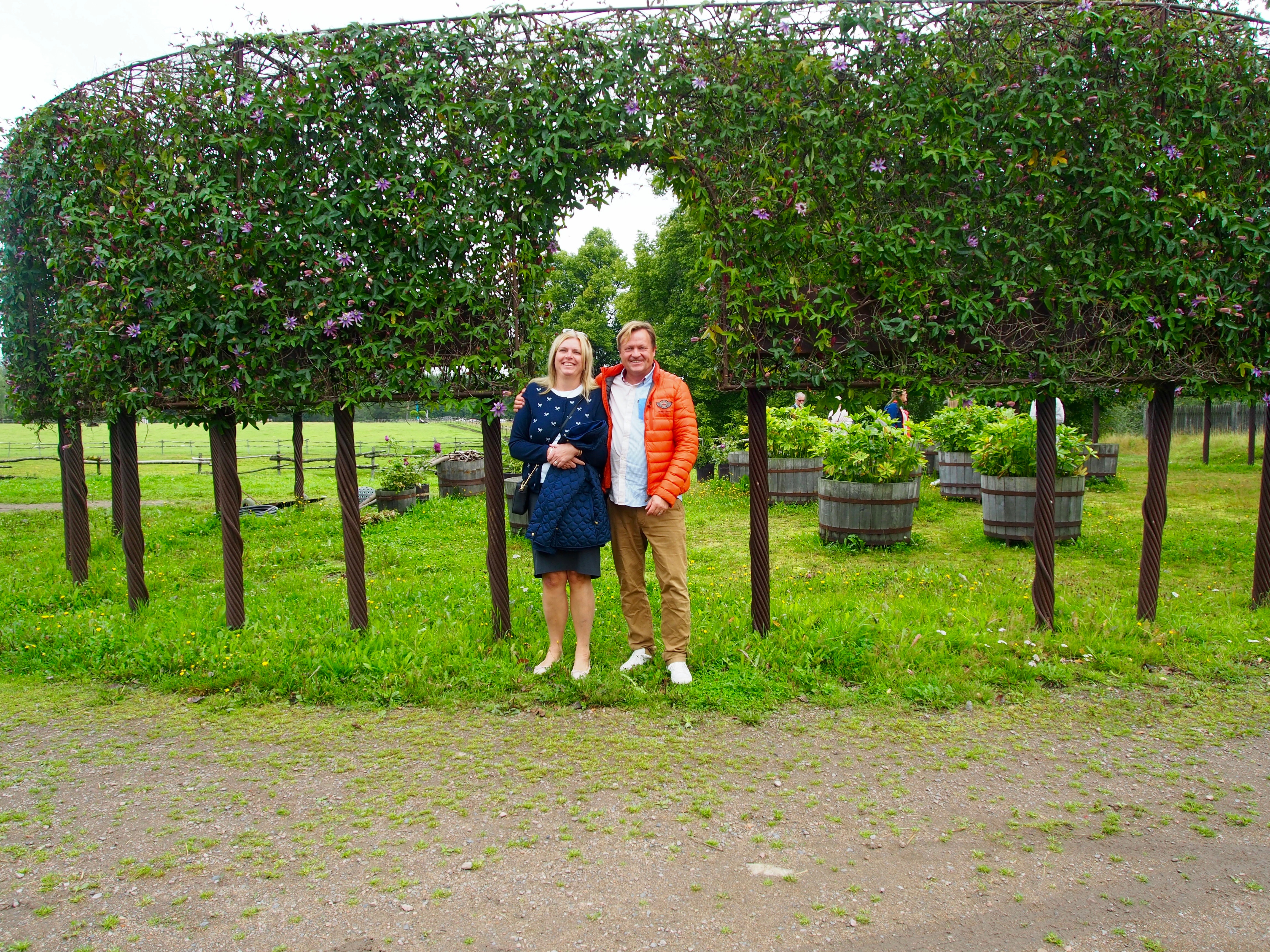 Efter besöket i den konstnärliga toaletten var det dags att vandra runt i trädgården. Vi gick i en lärklund mot liljeängen. På vägen dit fanns fantastiskt fina spaljéer med passionsblommor. Vilket arbete att få in dessa i orangeriets värme varje år.