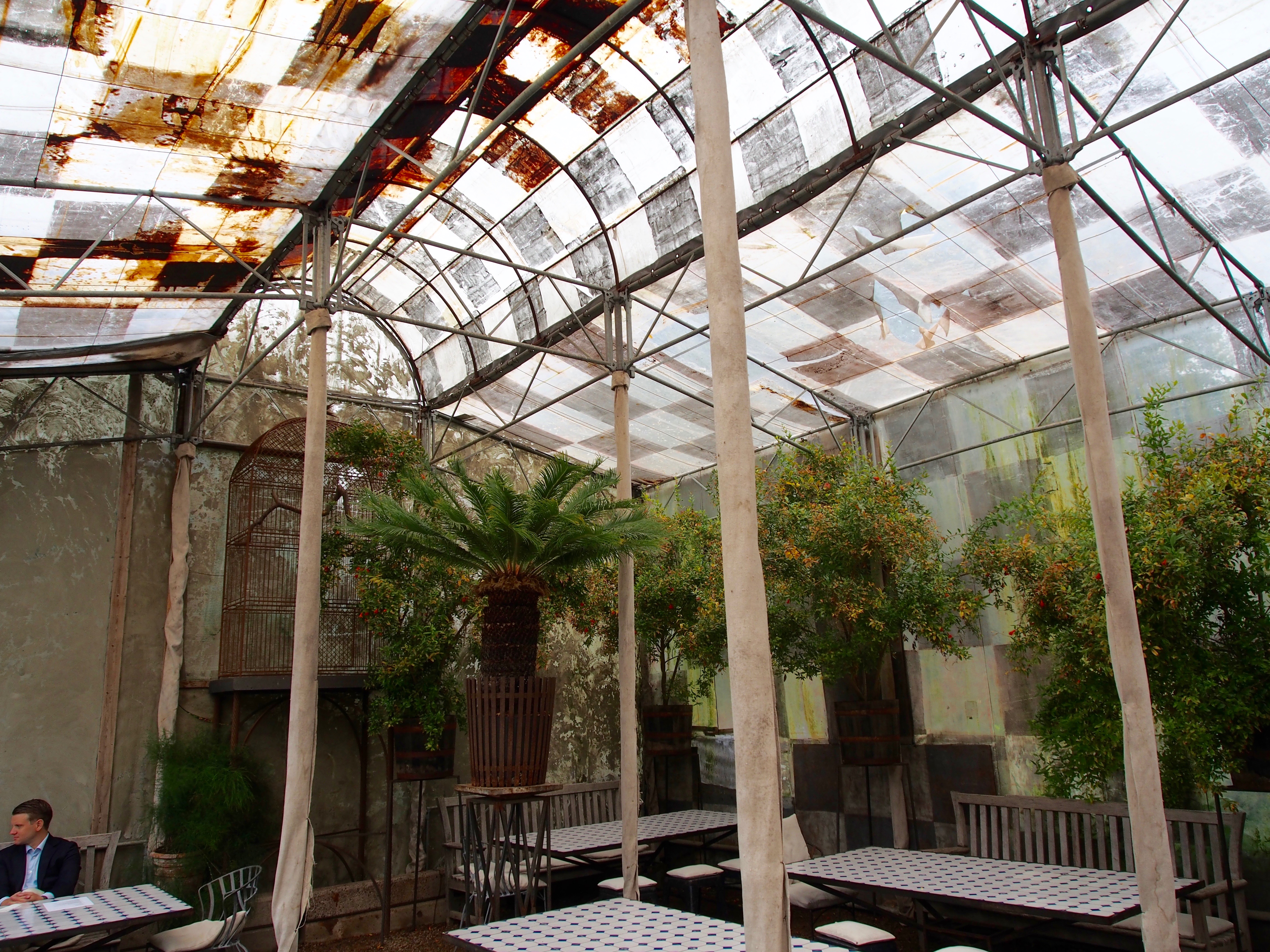 Näst på tur var det orangeriet. Ett ståtligt verk i glas.Sparsamt möblerat med diverse medelhavsväxter och kamelior och citrusar.