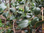 Den 19 august på min födelsedag överraskades jag v min två meter höga kamelia med en blomma. Nu var det intressant att se hur långt Tages kamelior kommit med sina knoppar.