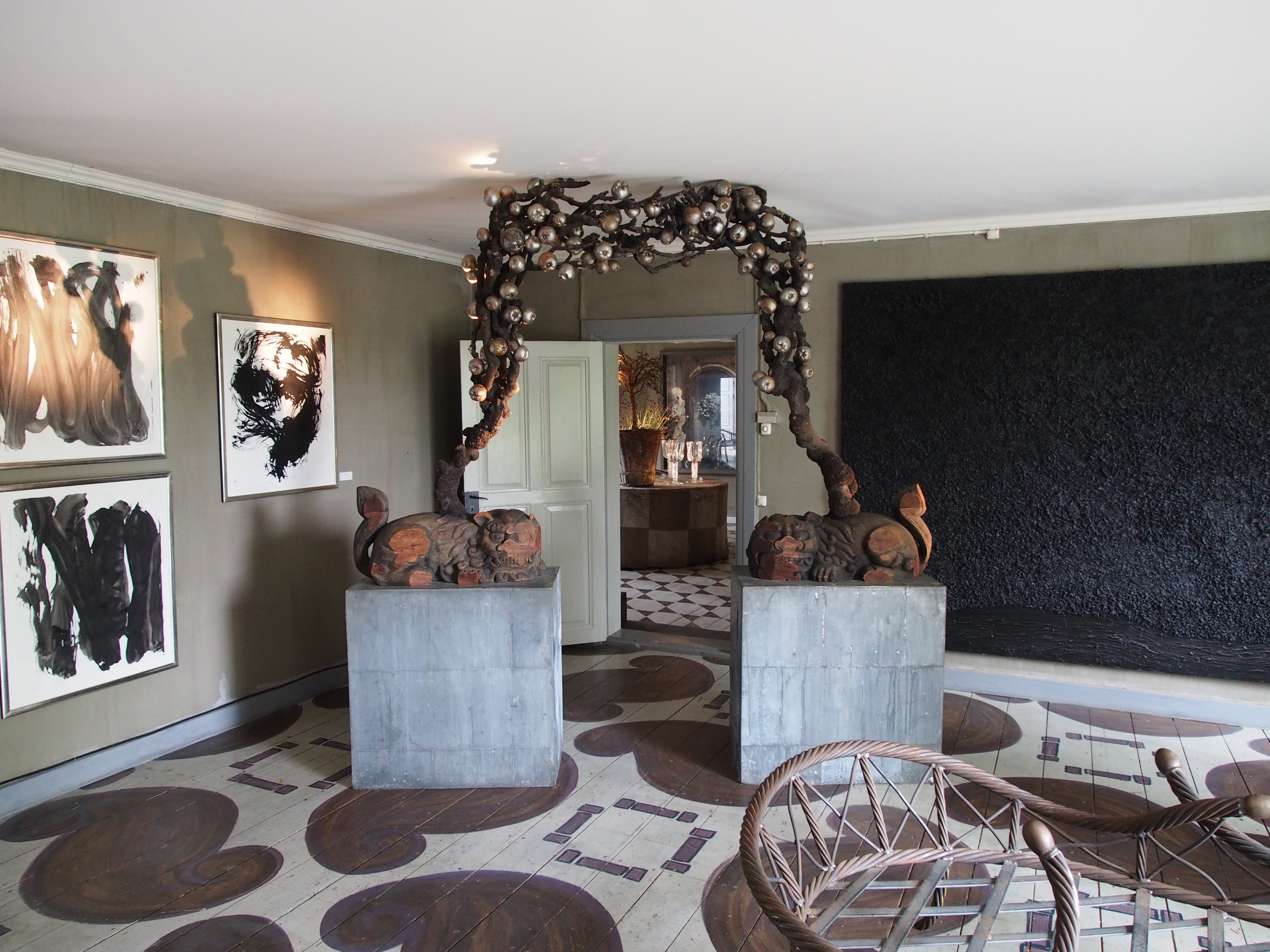 Vi löste våra biljetter och köpte tre böcker. Vi kunde bara inte låta bli. Det var 50% rabatt och det var några av mästarens böcker som jag inte hade p.g.a att jag inte riktigt haft råd att köpa dem. till biljetterna ingick en karta och vi blev tipsade på några saker som var särskilt bra för årstiden. Här i byggnaden fanns också konst att beskåda samt ett tiotal välmående grisar som snarkade i kapp i sin stia.