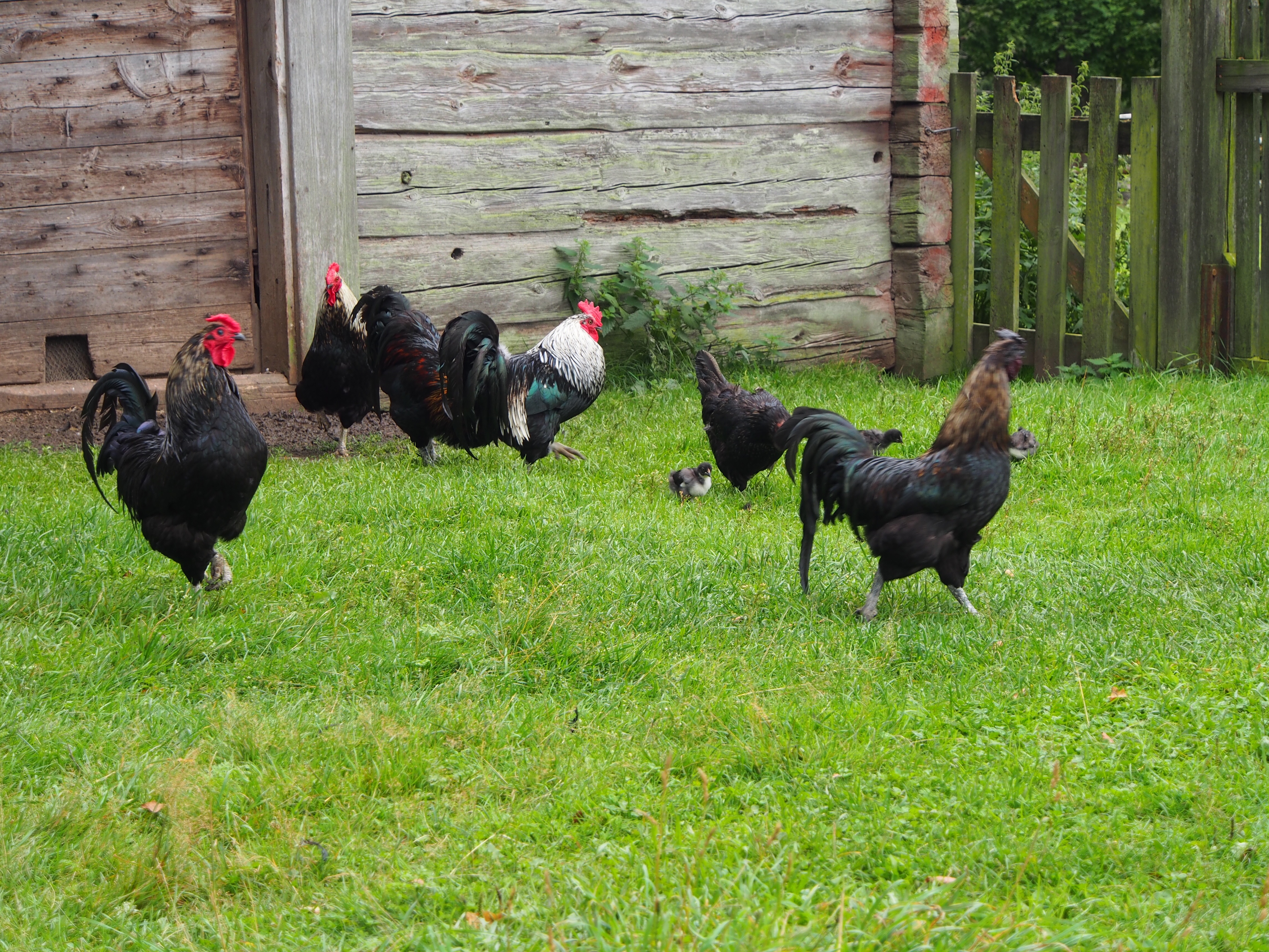 Väl framme var det en ny värld som öppnade sig. Dessa byggnader med alla olika djur som måste leva i paradiset. Grisar som låg tätt ihop och snarkade högt, fjäderfän med små kycklingar som sprang fritt samt kor, får och getter som betade tillsammans. Vi var lite tidiga och vi fick se fångsten i kräftdammarna som skulle spisas i kväll.