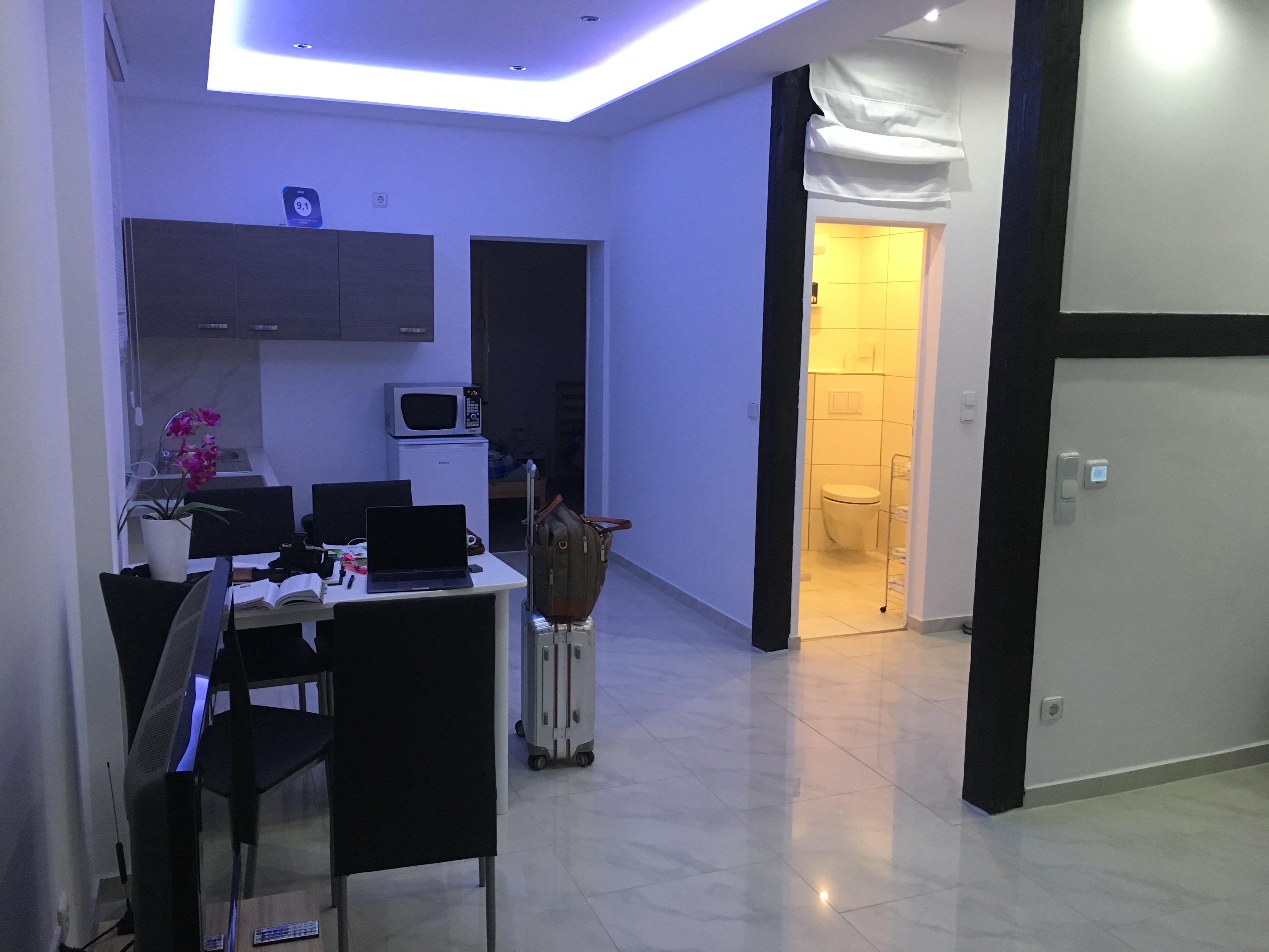 Nu ser jag att det inte är något hotell utan en lägenhet jag hyrt, mycket fräsch med utsikt över en rivningstomt och där efter Ruhrområdets museum. Nu gällde det att hitta någonstans att äta.