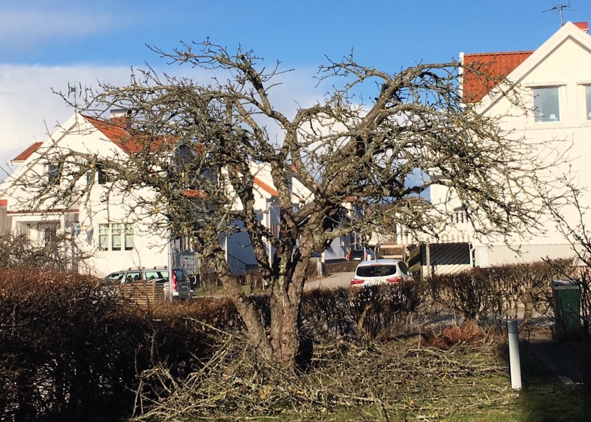 I fredags och idag har jag beskurit träd. Känns att man passerat 50 och väger närmare 100 när man hoppar mellan grenarna .