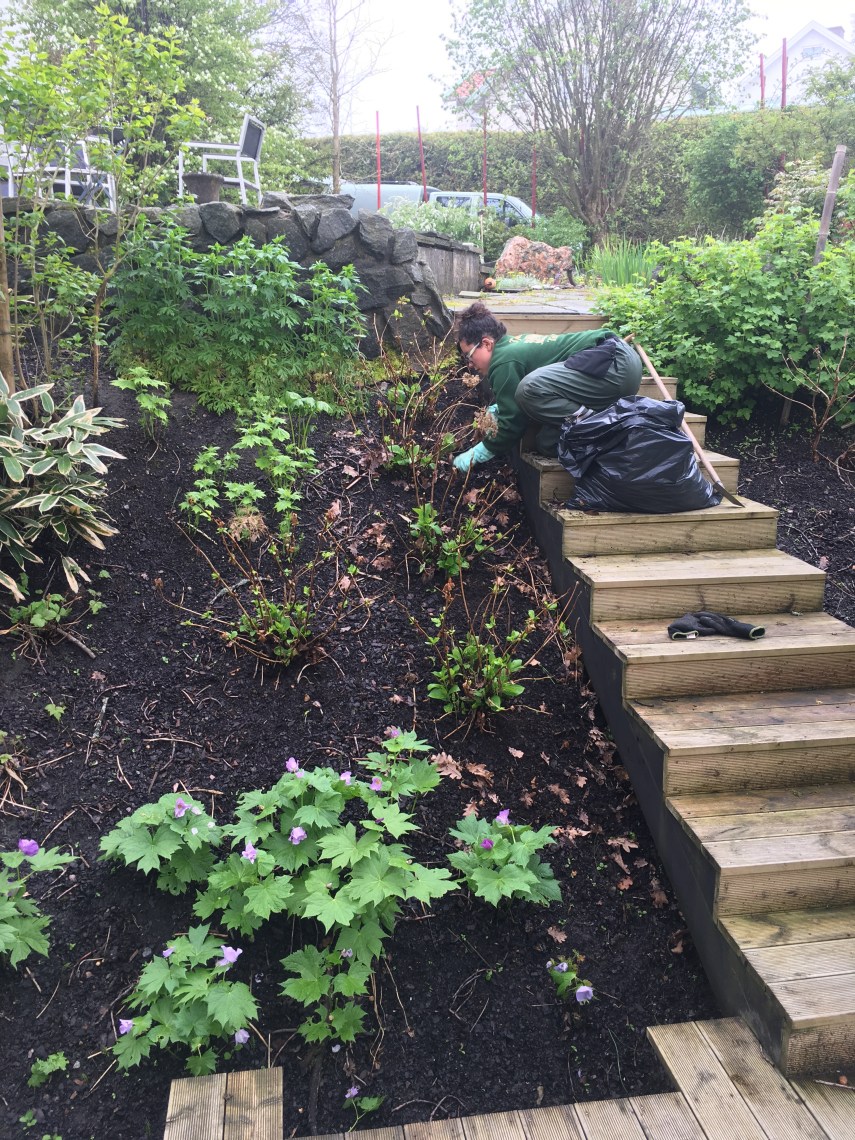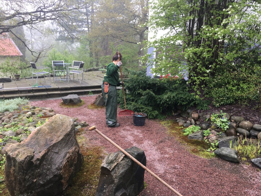 Idag har vi skrapat färg på spaljéer och klippt gräs. Beställt mängder med växter från Boskoop i Nederländerna. Mestadels har jag och Lisa beskurit, rensat och gödslat en privat trädgård i Japansk stil som vi gjorde för några år sedan.