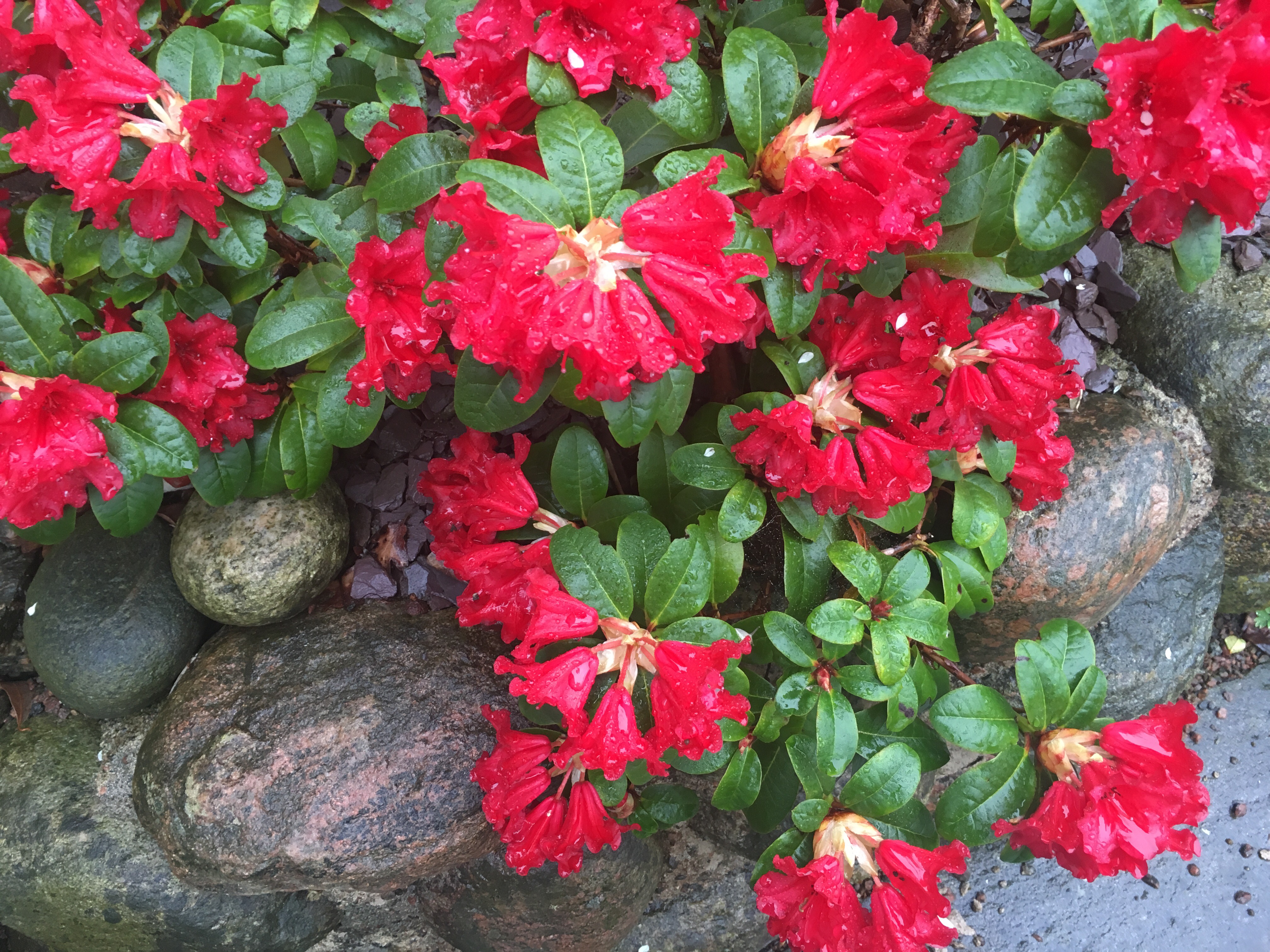 Jag avslutar dagen med ett fota på en röd rhododendron.