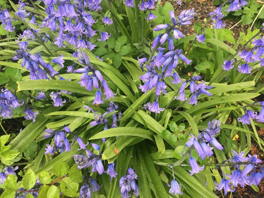 Mot husväggen blommar nu den blåa Spanska klockhyacinten.