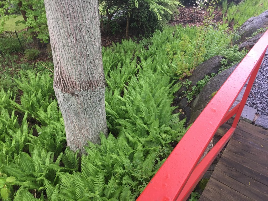 Här tar dock spjutbräken lätt överhand. det gäller att gräva bort en del hela tiden sett det är på en begränsad yta. Vi har en yta som ej beträds, lite svårtillgänglig. här har vi ett hav av spjutbräken, den har så vacker grön färg nu på våren.