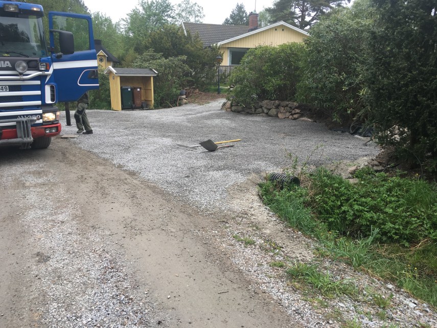 Idag har varit en hektisk dag. Vi har beskämpat ohyra och gödslat i kunders växthus, beskurit vin mm. Lagtt sista lass grus på en ny parkering samt fixat en del i vårt palmhus.