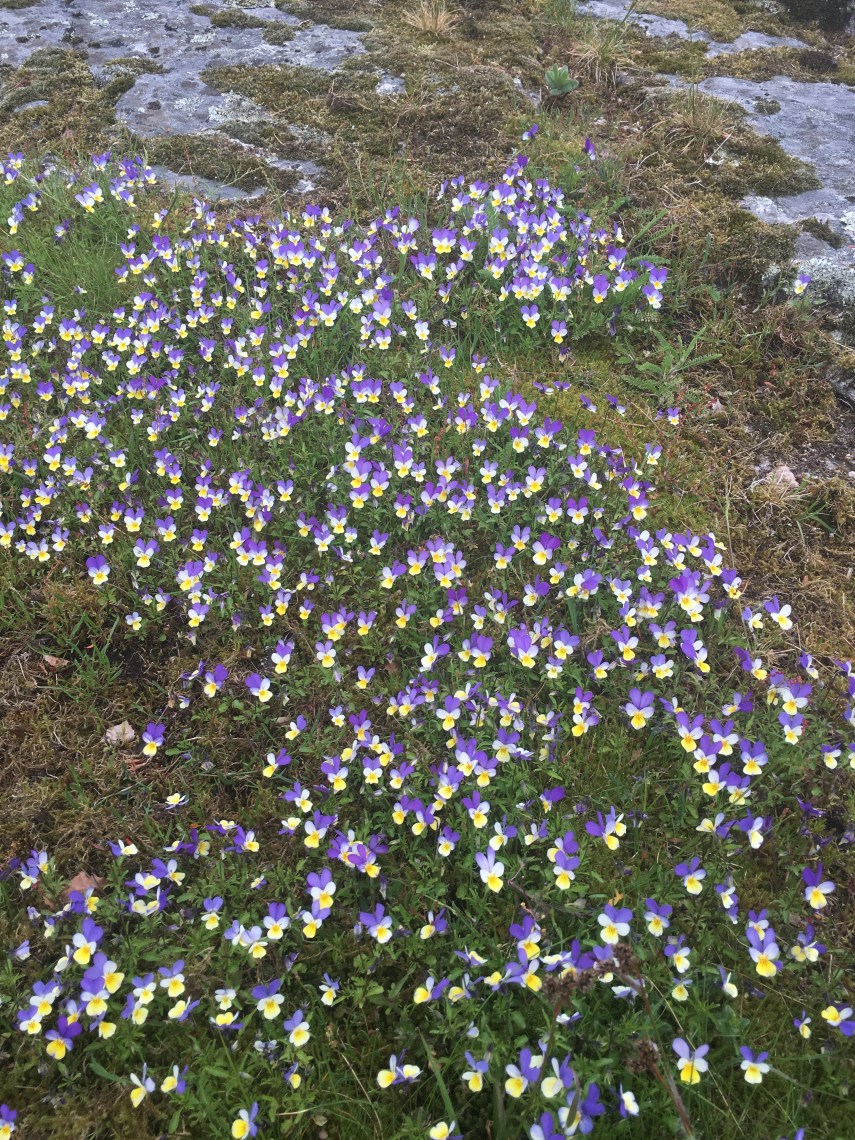 Utanför växthuset blommade styvmorsviolen vackert, vi är noga med att den får vara ifred underblomning och frösättning och undviker att gödsla där den växer.