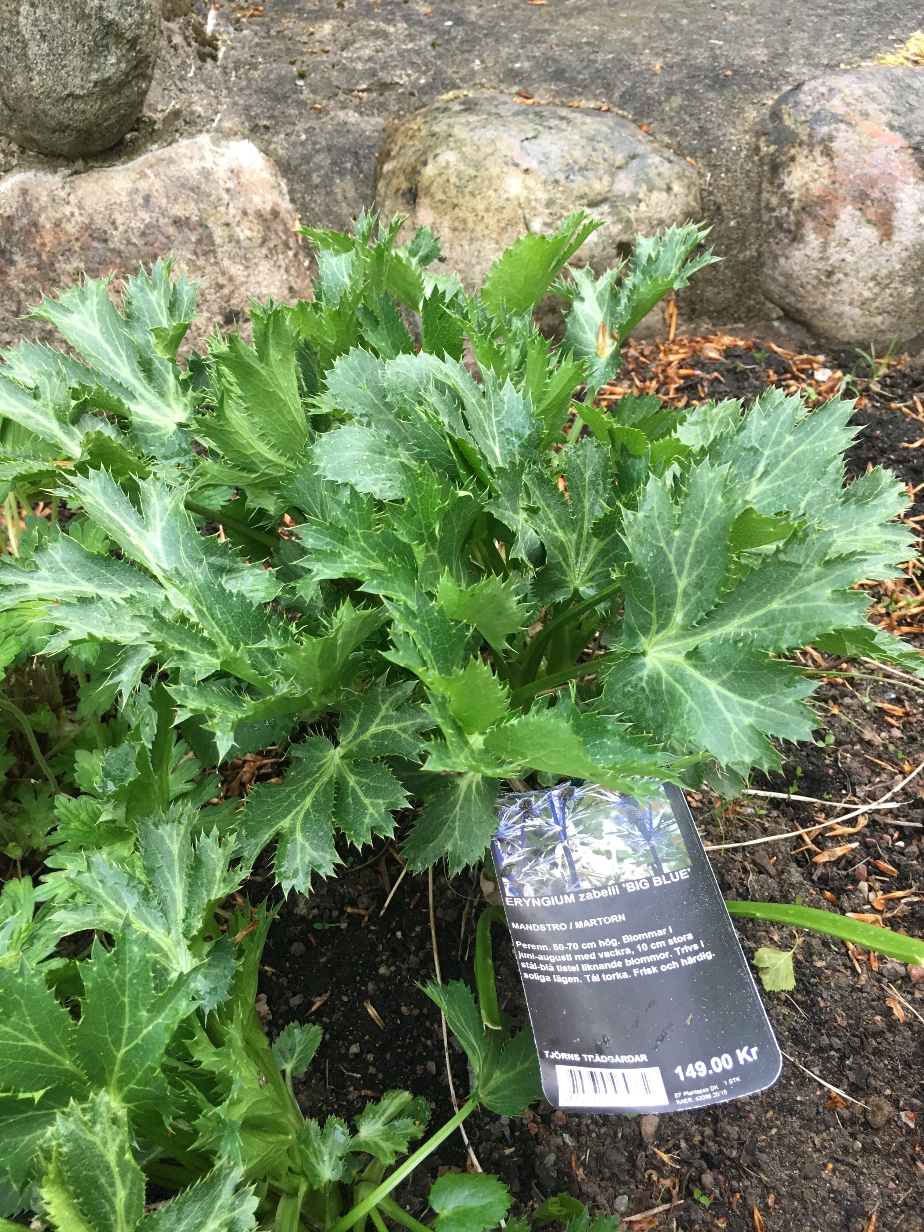 Min favorit martorn, Eryngium zabelli ‘Bîg Blue’ har kommit fint med sina vackra blad.
