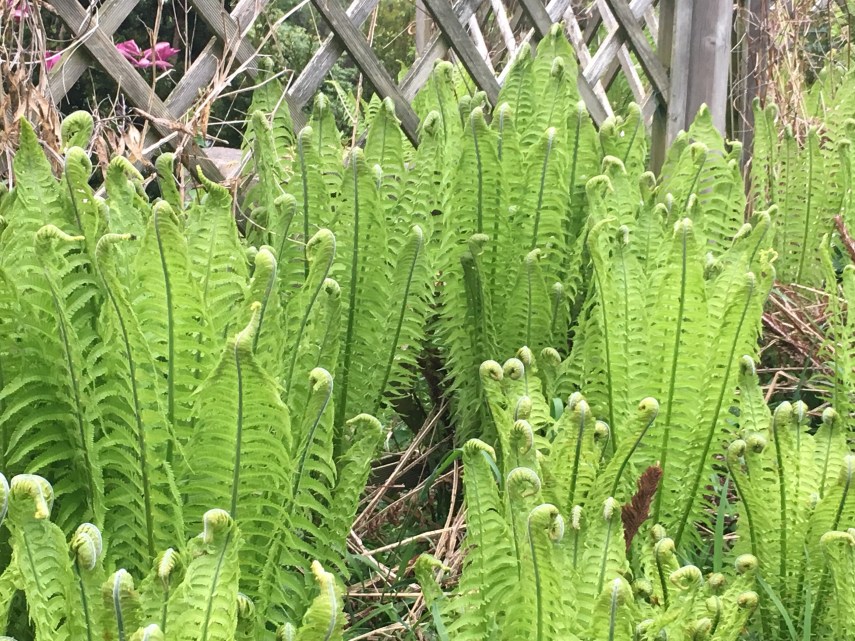 Spjutbräken har verkligen växtkraft och nästan lyser med sin vackre gröna vårfärg. Det gäller dock att hålla efter dem, de vill ta över annars.