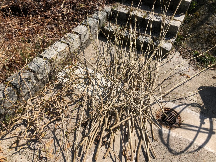Vridhassel, inte trollhassel som många säger skjuter oftast en massa rotskott, hög tid att ta bort dem nu.