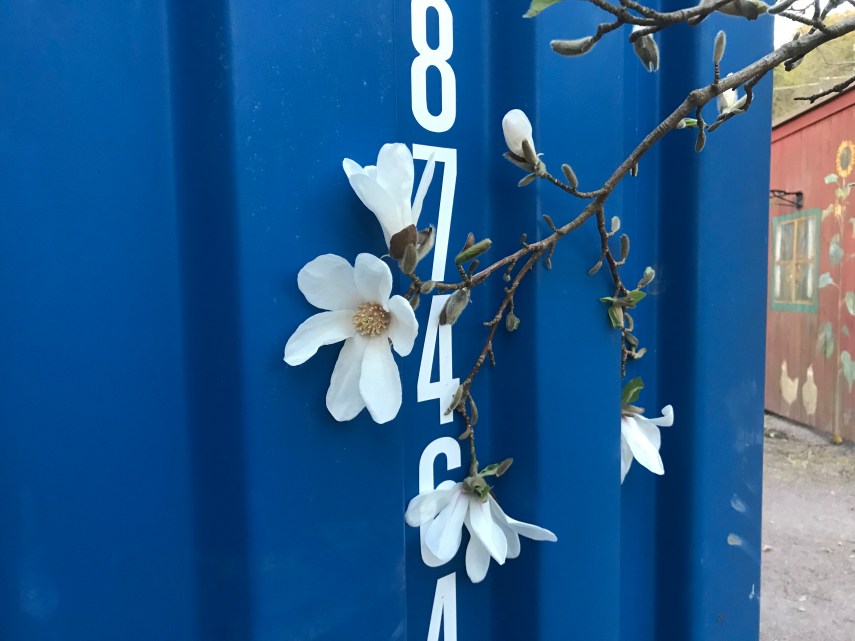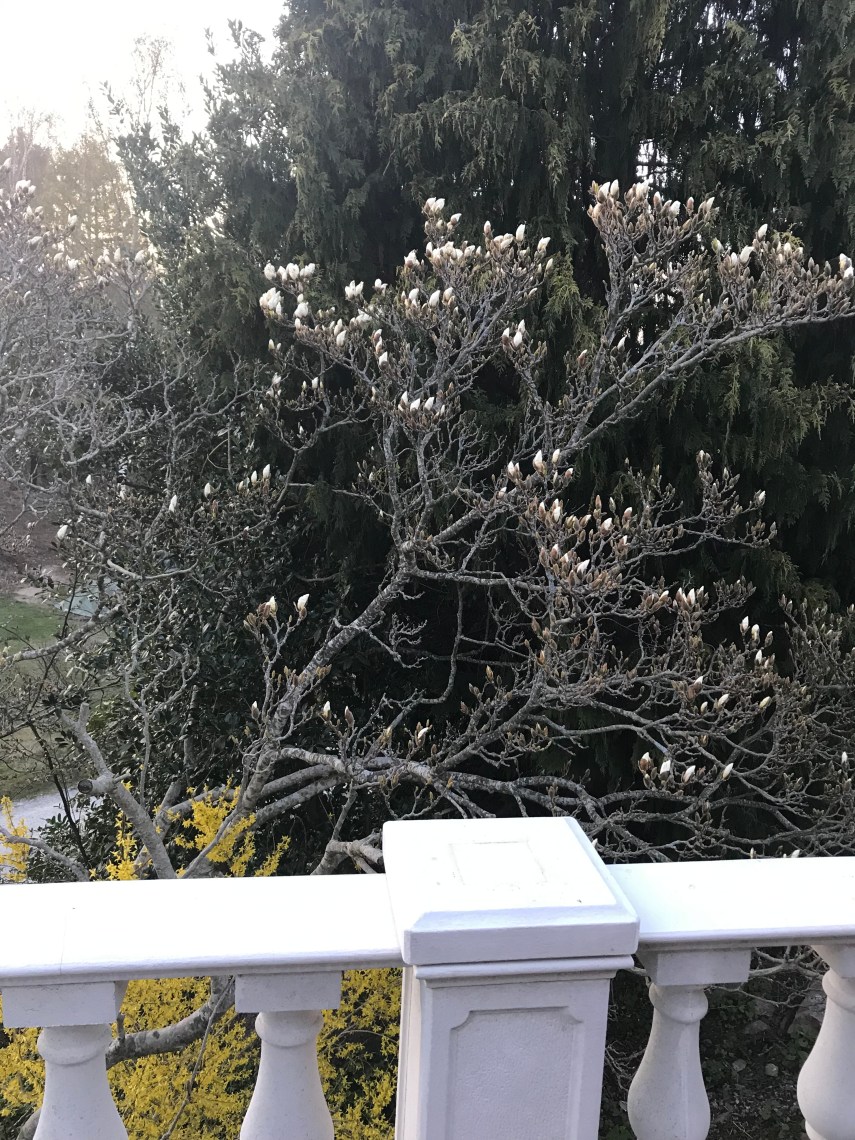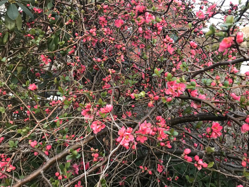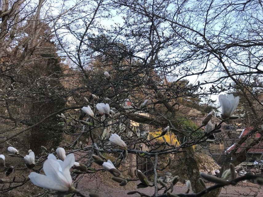 Magnoliorna har verkligen fått fart de senaste dagarna, även rosenkvitten som är i full blom. Saknar tibast, får komma på årets inköpslista, växer dock vild utanför trädgården.