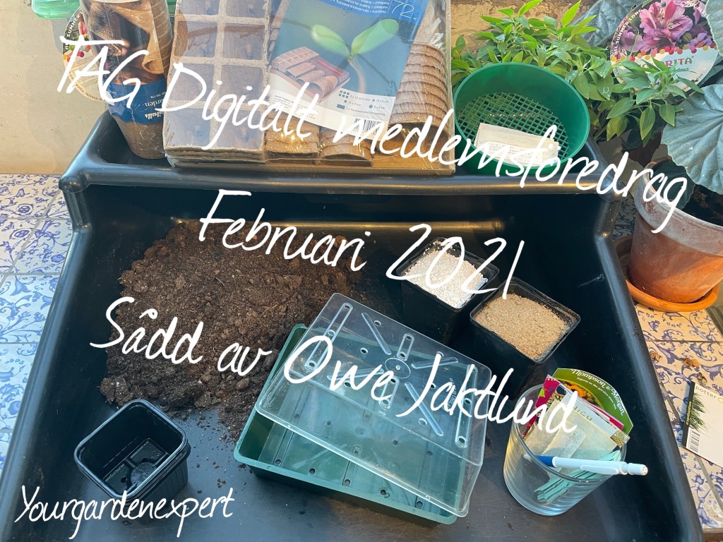 Det var allt från mig idag, men återkommer snart. I kväll klockan 19:00 på min youtubekanal Yourgardenexpert sänder vi från vårt Palmhus en timme och trekvart med experten Owe Jaktlund som lär ut det mesta om hur Du får sådden att gro. Glöm inte att gilla och prenumerera på min youtubekanal. Det är TAG, Trädgårdsamatörerna i Göteborg som jag hjälper att göra digitala medlemsmöten för. En helt otroligt bra förening med många duktiga trädgårdsamatörer som gärna delar med sig av sina erfarenheter. Som medlem får man också en fin medlemstidning samt frö.
