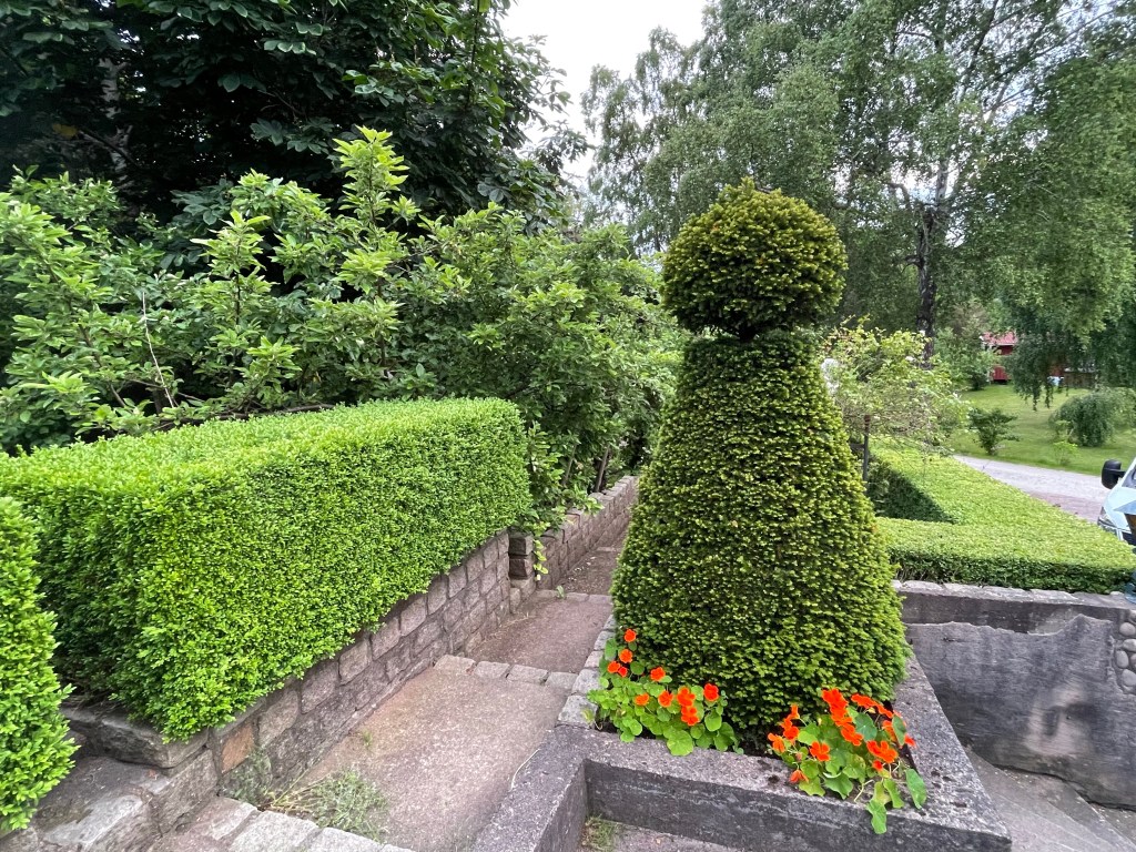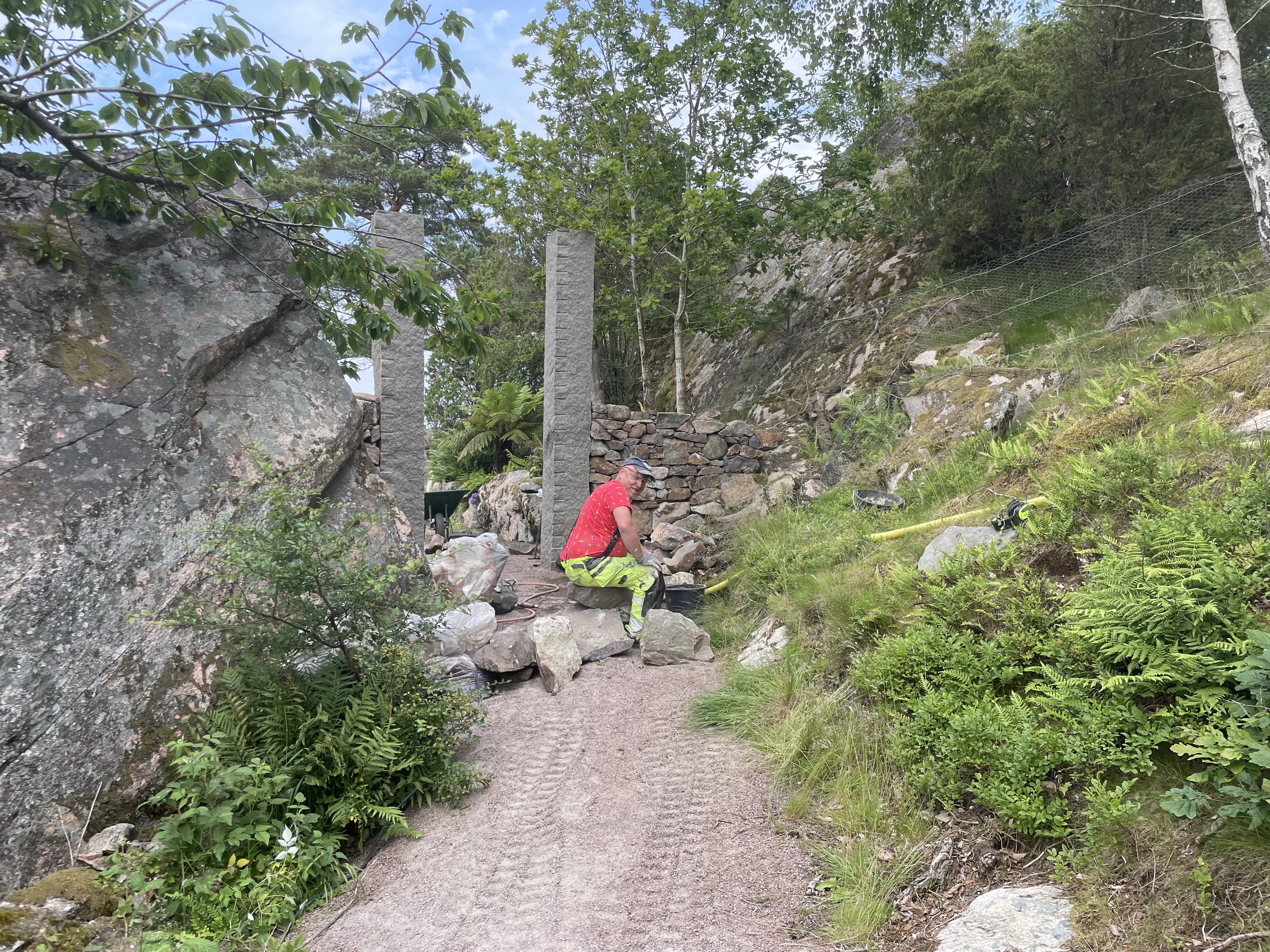På måndag ska jag köra ut tio ton ny jord för nya perennrabatten, här har tidigare varit orörd naturmark med 2-5 cm vegetationstäcke innan berget. Jag har plockat sten här idag och på midsommarafton. Idag har jag även fått hjälp att mura ny mur av all sten. Den kommer att bli ingången till Secret garden, den nya trädgården där ormbunkar är huvudingrediensen toppat med vivor, skuggliljor mm. Jag har också äntligen fått tag i en låda slingerstormhatt som ska ner i morgon. Dessa plantor har jag jag jagat i över 15 års tid, äntligen är de här. Frågan är bara vilket stöd de ska få, jag vill att det ska se så naturligt ut som möjligt. Kanske en enkel spaljé av gamla enris grenar.