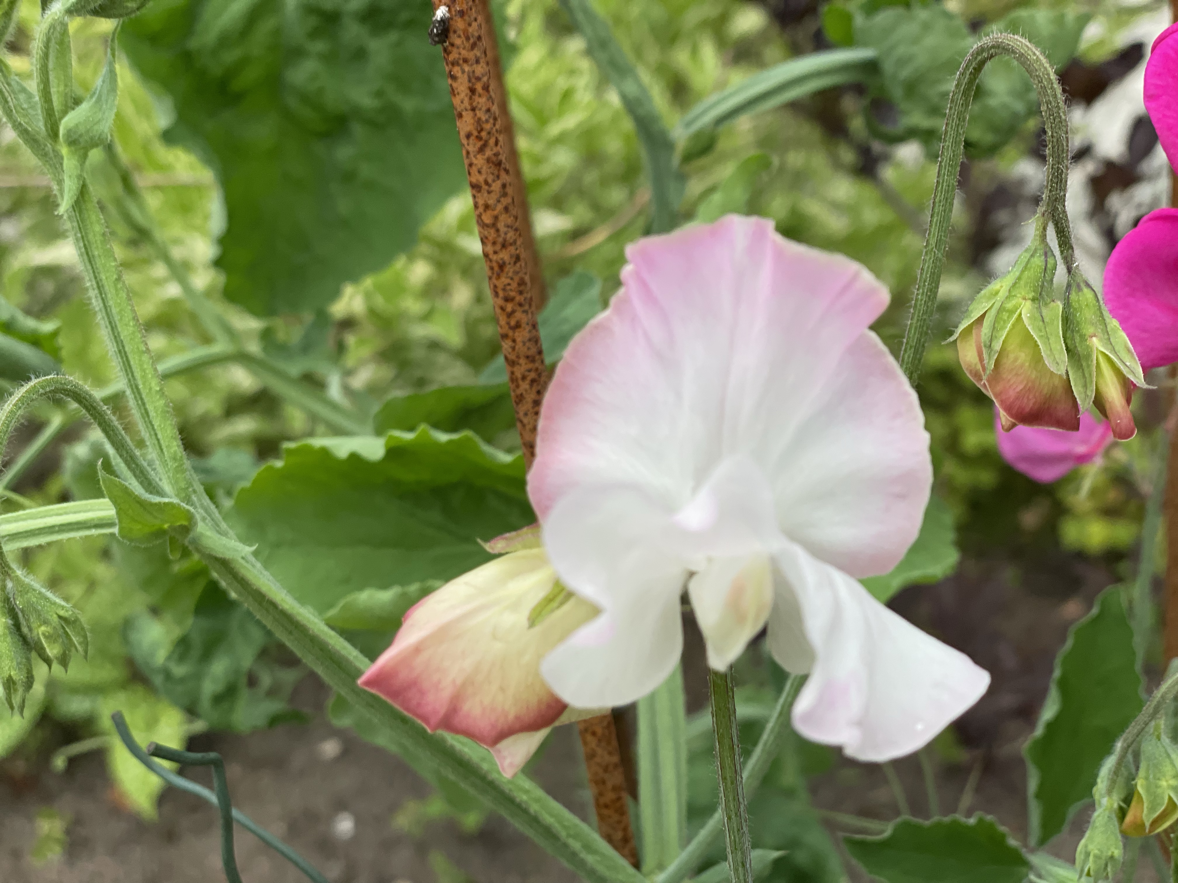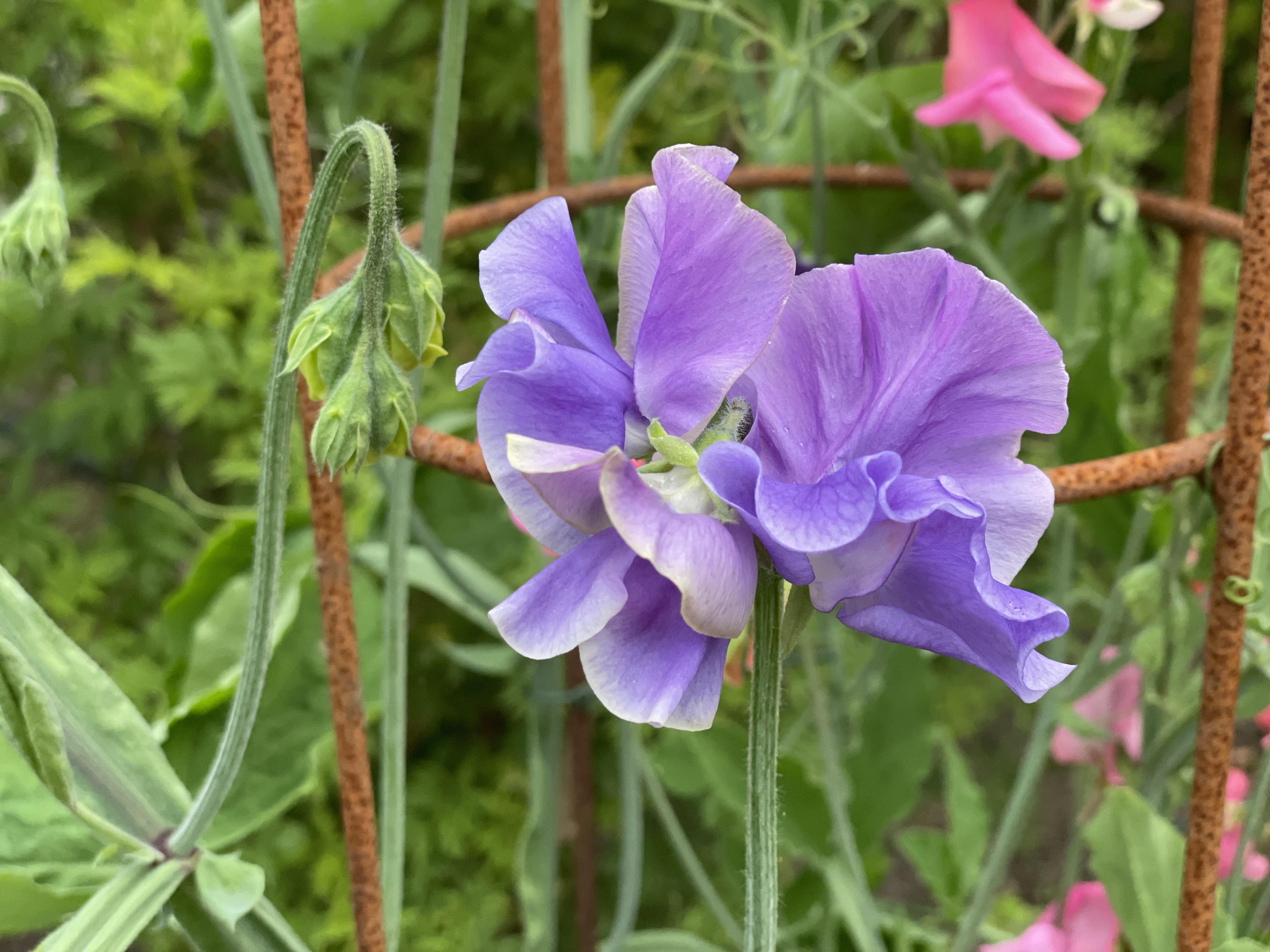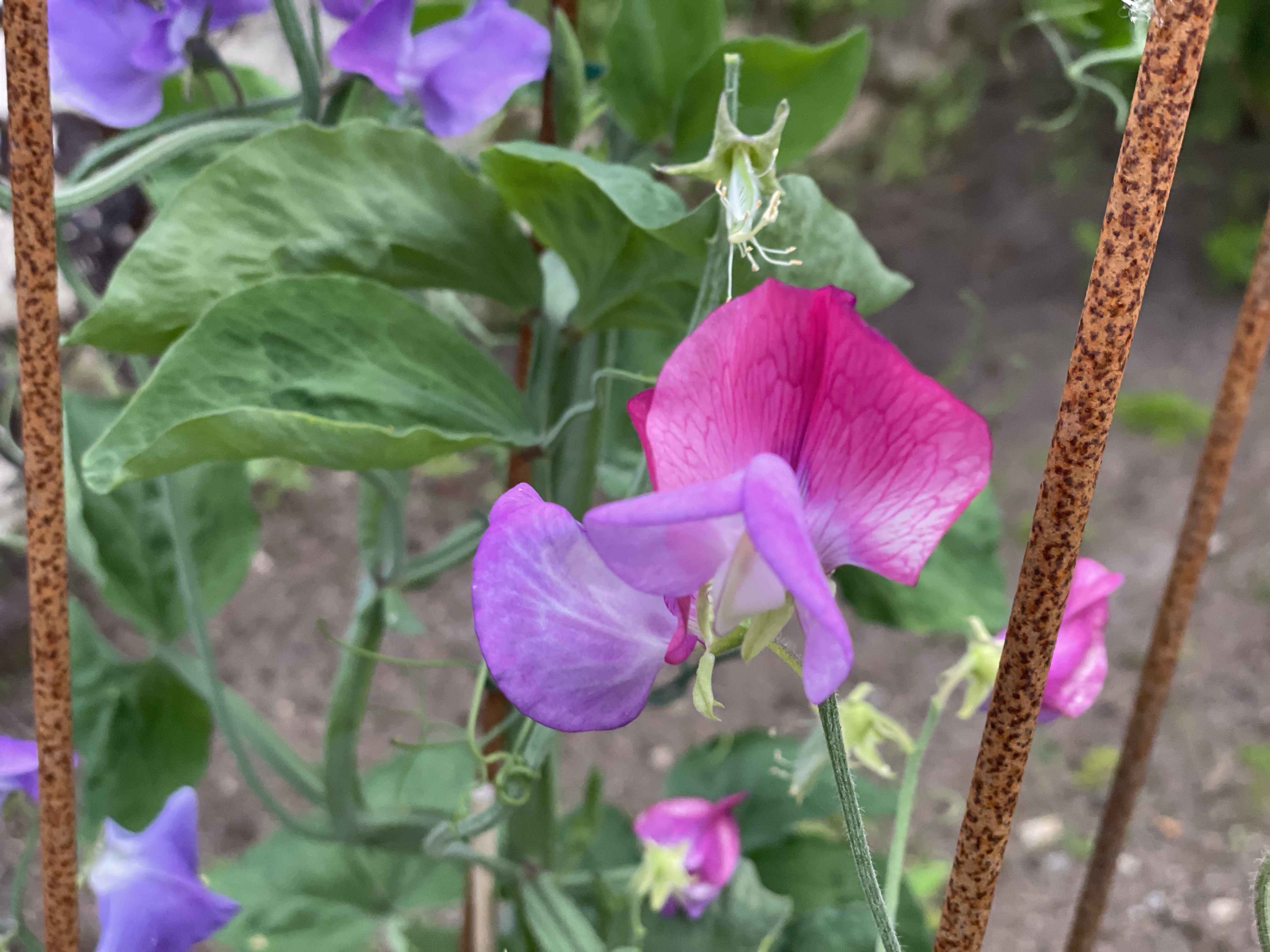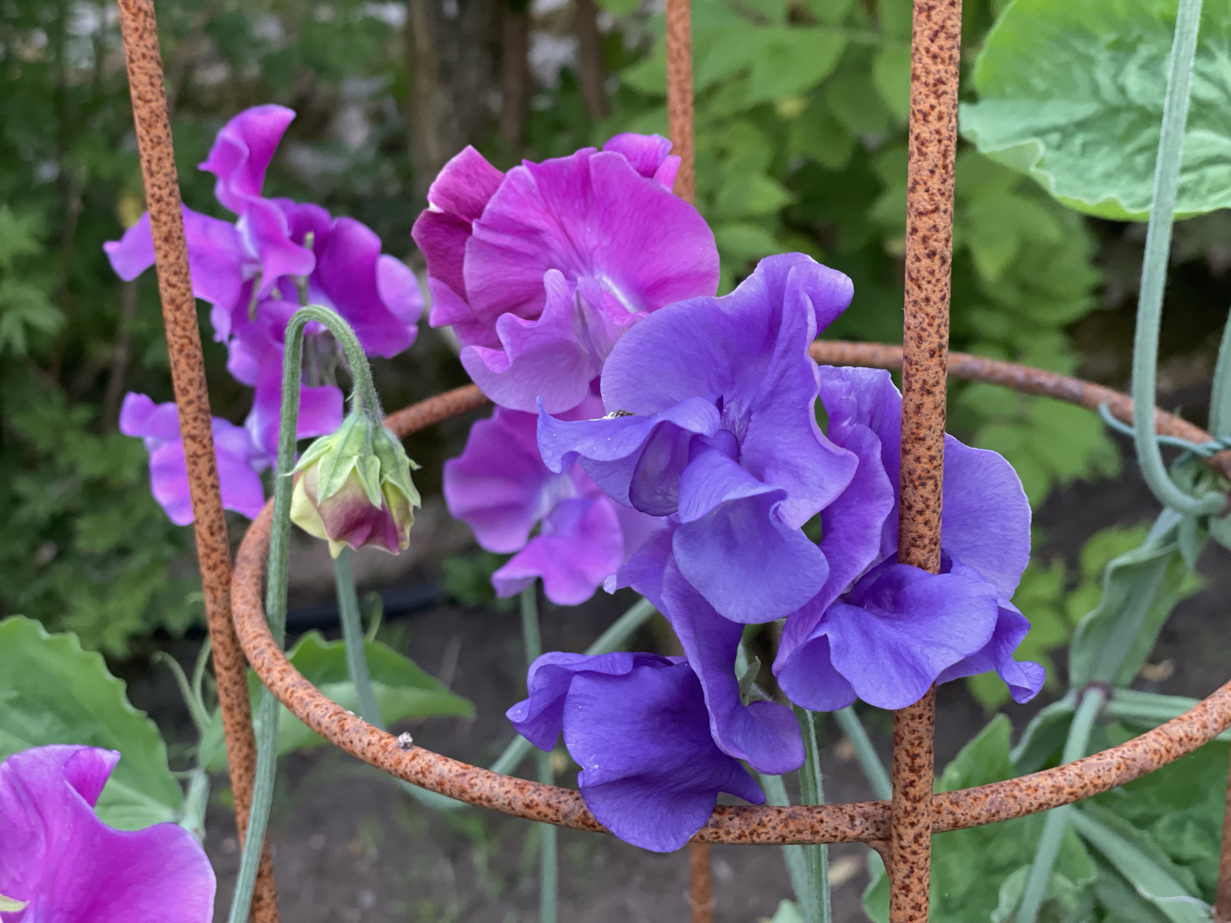 Luktärtorna är fina i år, jag är dock uppe väldigt tidigt varje morgon för att se om rådjuren är där och äter upp allt som de gjorde i fjol. Nu är det uppsatt elstängsel på tre sidor om trädgården, det har satt stopp för deras vanliga stråk och än så länge har jag inte haft några problem, knappt att man vågar skriva om det, kanske allt är borta i morgon.