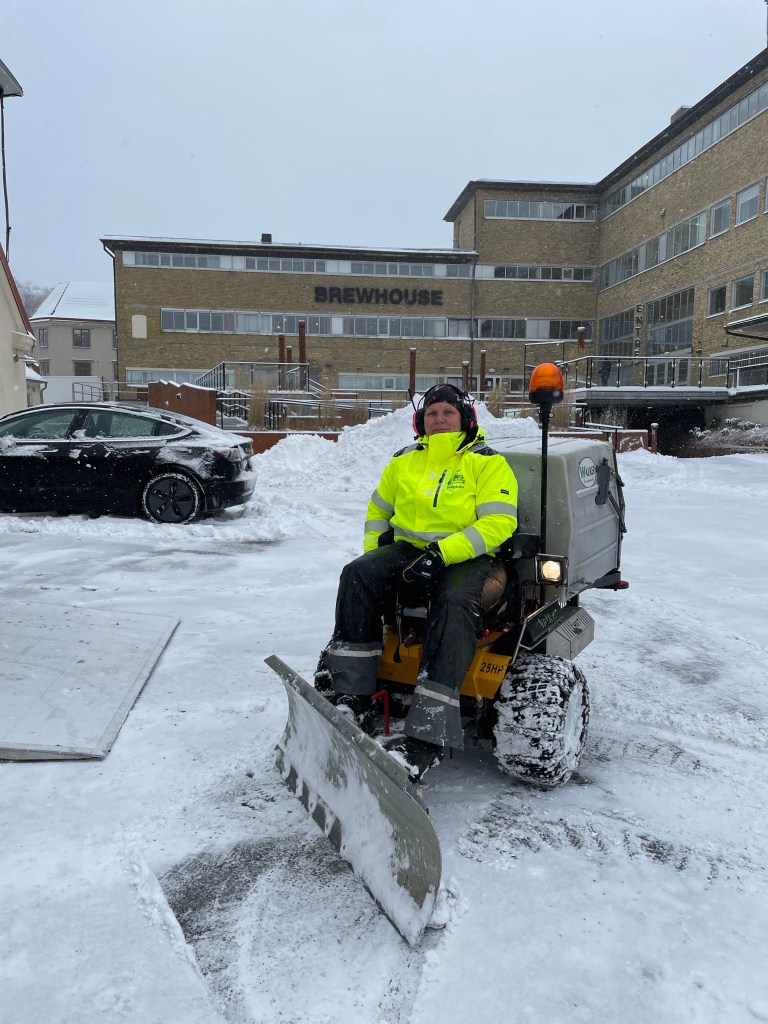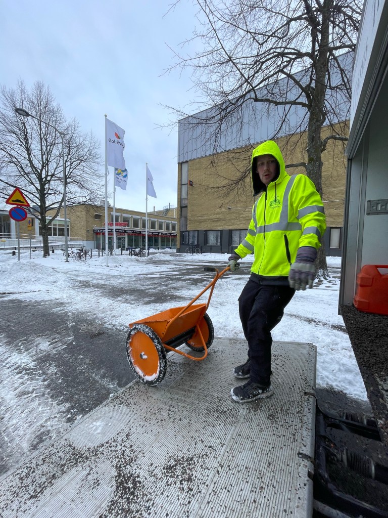 Den 1 mars hade vi satt som första dag på arbetet att ta bort all gammalt grus på våra gator och fastigheter vi sköter i centrala Göteborg. Detta fick vi ändra på nu när snön ställde till det.